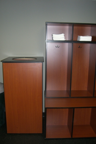 Custom lockers designed for the convienence of foot locker storage, jackets, bags and towels